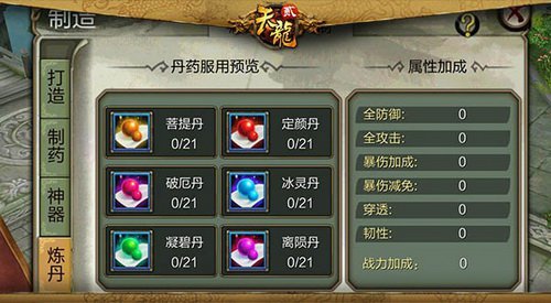更高的战力、更完美的特点、更公平的交易准则。将会给各位玩家带来不一样的百炼成丹的体验!想要成为江湖人人求之的一流炼丹大师就速来和小编一同拜读炼丹终极攻略吧!      首先点击头像,炼丹体系在【制造】界面,炼制需耗费【曼陀罗花】、金币和体能,珍贵的曼陀罗花需经过少室山及护卫雁门关任务获取,完结日常任务添加活跃度,也能获取【曼陀罗花】。      将所有灵物放入鼎炉中即可获得一枚专属工作丹药,每种工作丹药会永久添加不同的战力特点,但每个门派只能炼就其对应门派的丹药,比如说,少林只能炼制少林的丹药。不同工作的内丹带给少侠们的特点加成也各不相同。那有些少侠说了集腋成裘,除了本来的工作战力特点,我还想提高其他特点怎么办!      不要急,在全新炼丹体系中,炼就的丹药均能进行交易、或者老友赠送!丹药永久提高战力当然好,但是小编要提醒少侠们,每人每日各工作最多只可服用一粒丹药!假如今天忘记了,少侠也不要灰心,改日还能随时弥补上!      根底才是战力飙升的底子,想获取其他工作丹药,需求结交老友获取交易行转卖,富甲天下的捷径之路为各位敞开,快来成为一流的炼丹大师,受万人膜拜追捧!      炼丹体系与少侠们的日常生长密不可分,是各位提高战力的灵丹妙药。但傲视天地吞噬苍穹,除了具备精湛的技艺方法之外,炼丹之功也需求各位莫要急于求成,唯有脚踏实地悉心锻炼才是成为问鼎中原武林的光亮之道!
